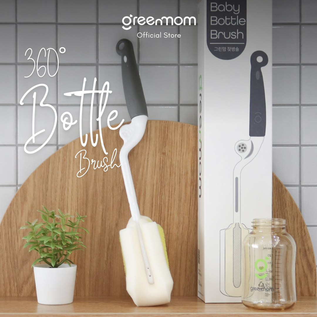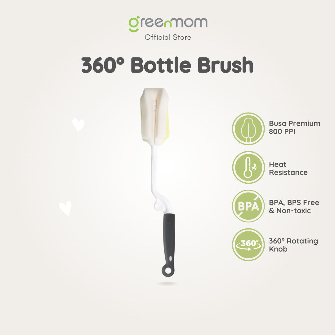 Greenmom 360° Bottle Brush dirancang khusus dengan handle yang bisa berputar 360° sehingga membuat pengalaman mencuci botol susu bayi lebih nyaman, mudah, dan hemat waktu. Bisa digunakan untuk membersihkan botol secara menyeluruh tanpa merusak lapisan botol.