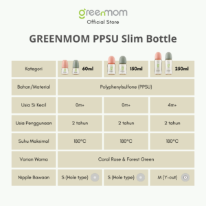 Greenmom PPSU Slim Bottle / 250ml / Coral Rose