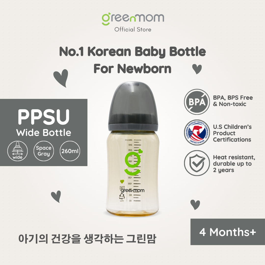 Greenmom PPSU Wide Bottle / 260ml / Space Gray