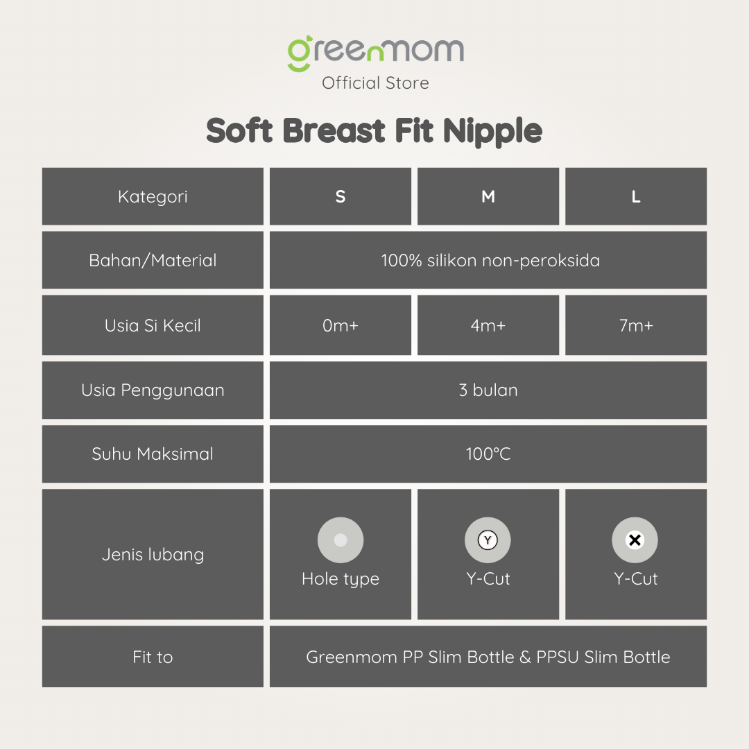 – Dapat digunakan untuk botol Greenmom PP Slim Bottle & Greenmom PPSU Slim Bottle